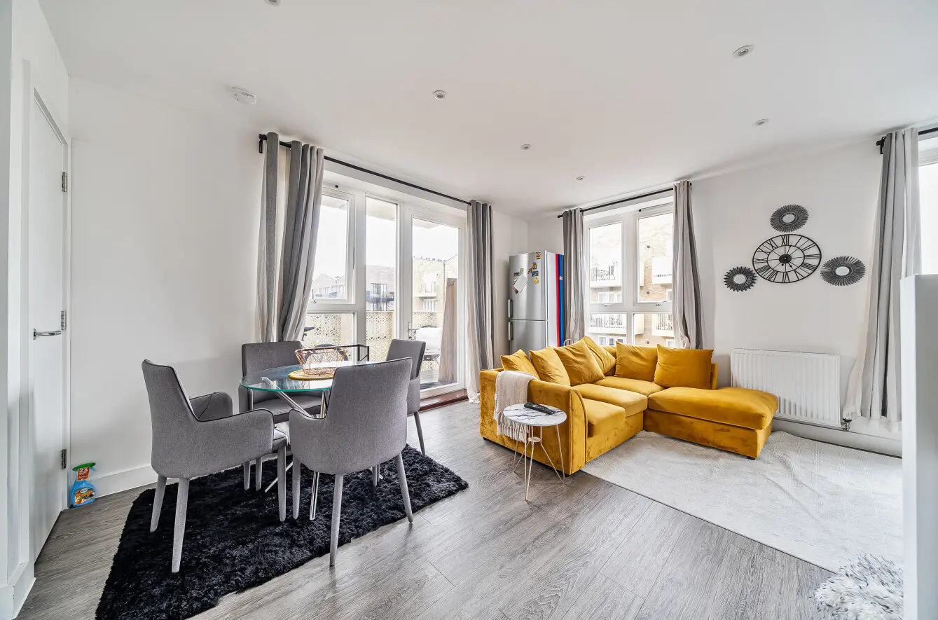 A modern, second floor, three-bedroom apartment in Rochester.