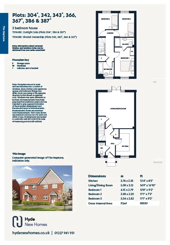 The Neptune, is a semi-detached three bedroom house perfect for growing families, close to a children’s playground and with a generous garden. Reserve for just £99 and receive a moving contribution of up to £5,000!